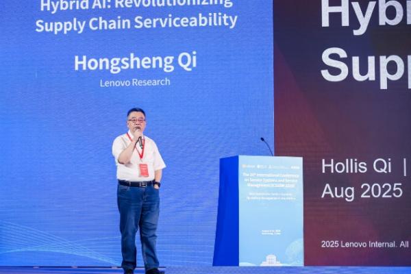 开幕式后,大会荣誉主席、清华大学联想讲席教授陈剑教授,会议联合主席、南京大学徐小林教授和会议联合主席、清华大学肖勇波教授分别主持三个大会主题报告。中国科学院自动化研究所王飞跃教授作了题为“Parallel Management for Parallel Economics with New AI: From LaSEE to CiSEE”的大会主题报告,提出平行经济下的平行管理与新人工智能自适应框架。加拿大多伦多大学胡明教授作了题为“Supply-Demand Matching in Space”的大会主题报告,结合即时经济与全球供应链案例,探讨了空间供需匹配的优化模型。联想研究院人工智能实验室智能数据总监祁宏升作题为“Hybrid AI: Revolutionizing Supply Chain Serviceability”的大会主题报告,通过介绍联想在供应链智能化中的实践,展示了融合 AI 和智能体对提升供应链弹性的实际价值。