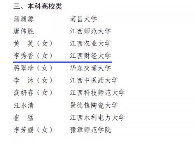 李秀香教授,2022年荣获第二届江西普通高校“金牌研究生导师”、2020年荣获江西省五一巾帼标兵、2021年荣获第五届省师德师风先进个人、2011年荣获高等学校第七批中青年学科带头人、2020年荣获全国优秀会员、2023年荣获全国参政议政工作先进个人、2022年荣获民建全省优秀会员、2021年荣获参政议政先进个人、2021年关于加大我国湿地生态系统保护力度的建议(调研报告)为全面建成小康社会建言献策荣获优秀成果奖。
