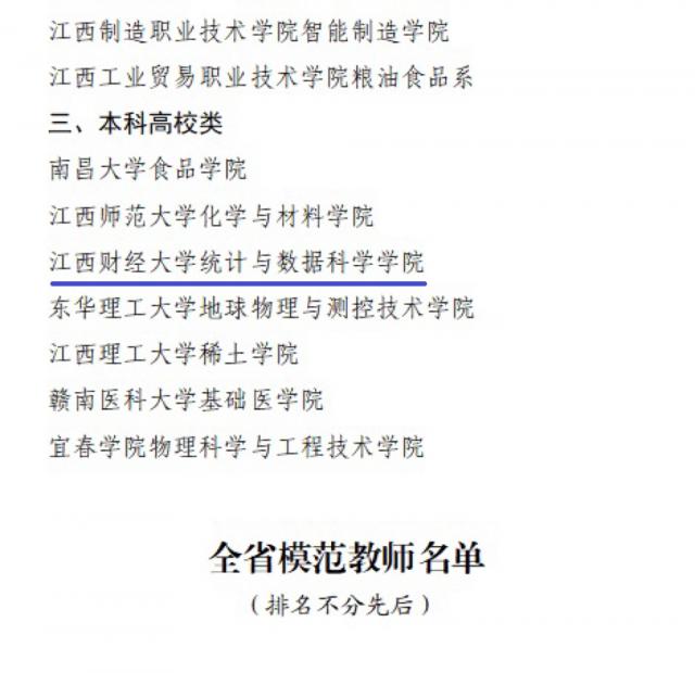 近日,全省教育系统先进单位、模范教师和先进教育工作者评选结果揭晓,我校统计与数据科学学院荣获全省教育系统先进单位称号,李秀香教授荣获全省模范教师称号 。