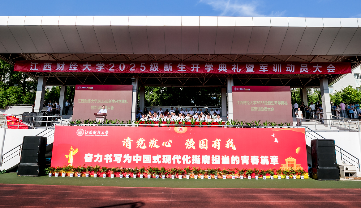 百年来,江财人自强不息、艰苦奋斗,秉承“信敏廉毅”校训和“敬业乐群、臻于至善”大学精神,培养了30余万名各类优秀人才,为国家和地方经济建设、社会发展作出了积极贡献。刘耀彬指出,同学们走进了江财的校园,江财同样也进入了同学们的人生,大家就拥有了一个共同的名字——“江财人”。江财,愿做你们成长道路上的同行者与摆渡人,既给你们向下扎根的底气,也给你们向上高飞的勇气。江财能给你:精神传承与奋斗指引,涵养矢志向前的人生力量。江财能给你:包容平台与成长沃土,绽放多元青春的独特光彩。江财能给你:家国情怀与责任使命,塑造心怀大我的时代品格。