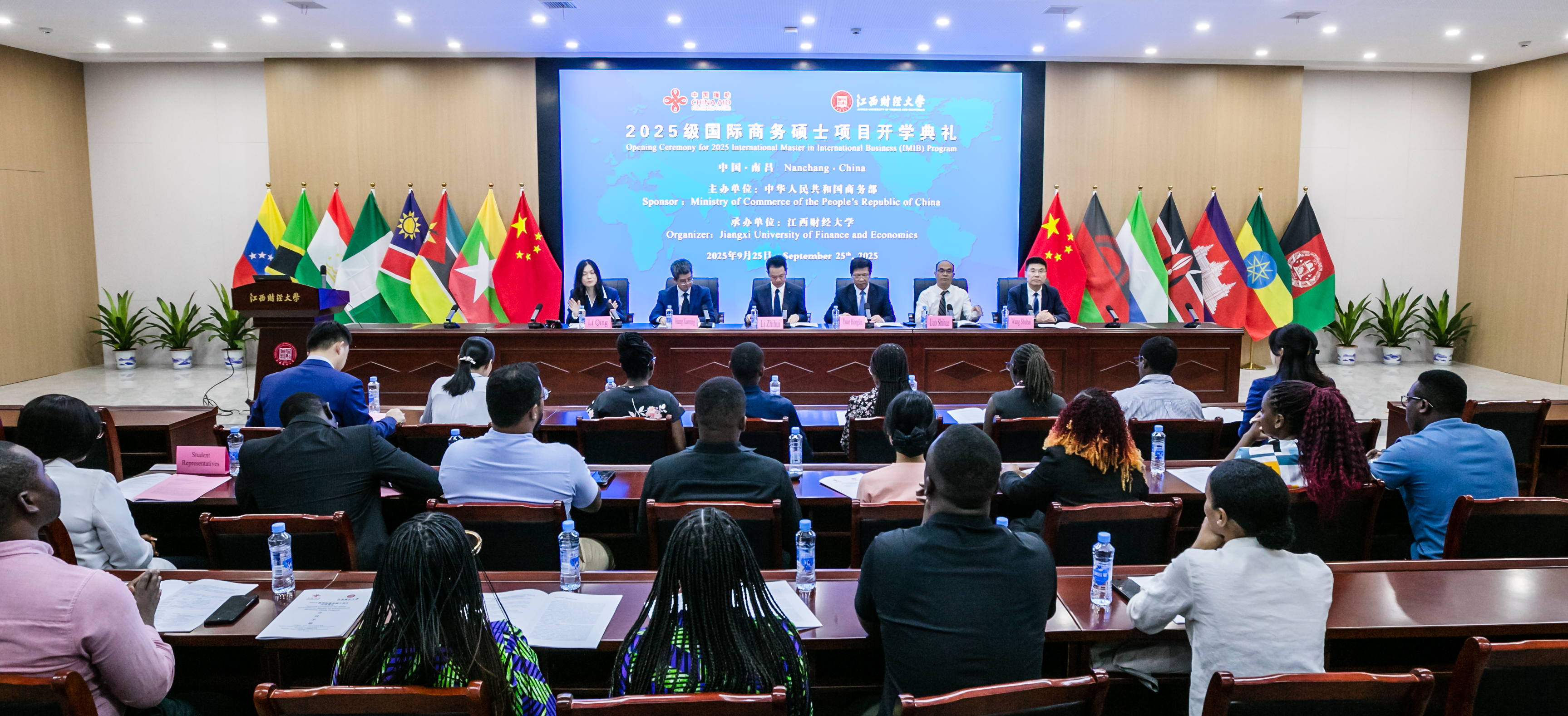 9月25日,由商务部主办、我校承办的2025级商务部援外国际商务硕士项目开班典礼在我校举行。副校长袁红林、江西省商务厅外经处二级主任科员李志辉出席典礼并分别致辞。研究生院、海外教育学院、国际经济与政治学院负责人及来自14个国家的30名硕士留学生参加典礼。典礼由海外教育学院副院长李庆主持。