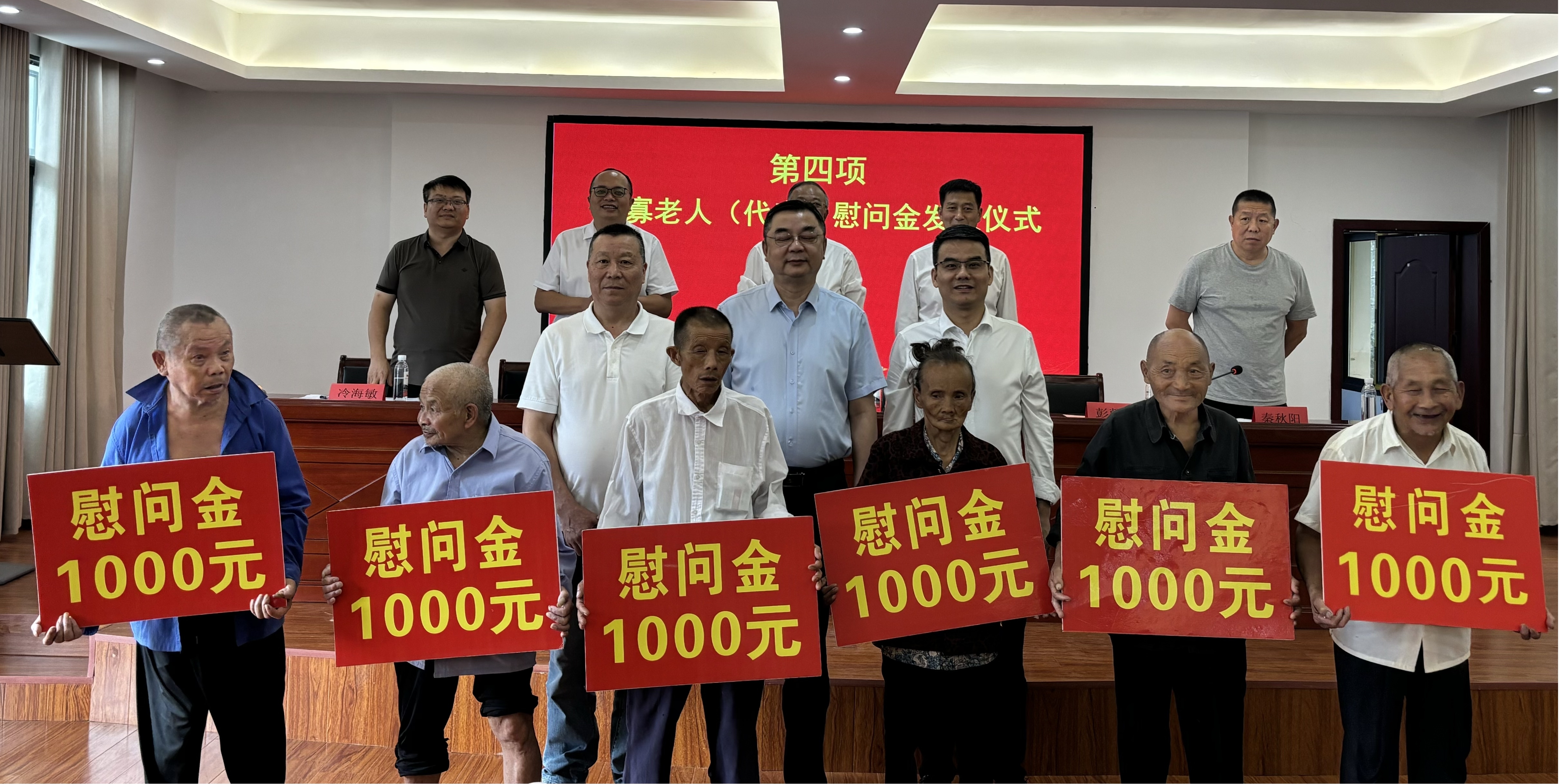 MBA校友代表向西塔村孤寡老人代表发放慰问金。