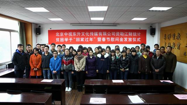 在一次闲聊中得知这一情况后,统计学院84级校友高素梅女士毅然伸出了爱心之手,向该院所有与葛富健一样因贫困无法回家过年的学子资助往返交通费用,并每人发放春节慰问金伍佰元。1月2日下午,资助活动的发放仪式在统计学院会议室举行,共有52学子享受了此项资助,资助金额近四万元。