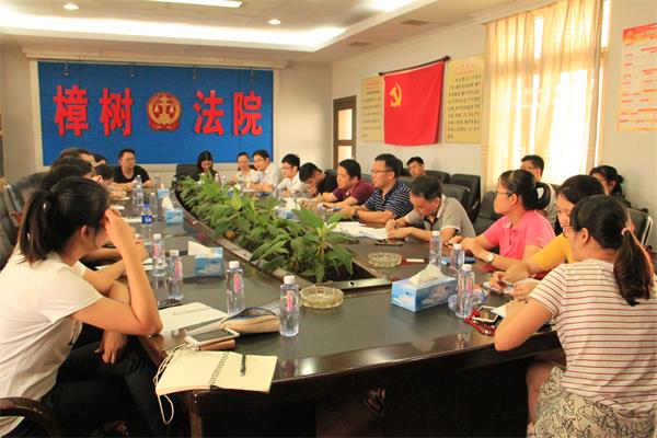 7月6日下午,樟树市人民法院特地召开座谈会。樟树市人民法院党组成员、副院长刘鹏、副院长白幸平、执一庭庭长谢辉、执二庭庭长朱志军等15名法院工作人员出席了此次会议,江财法学院党委书记贺三宝、分团委代书记李临彧及7名实践调研队成员积极参与了此次座谈。