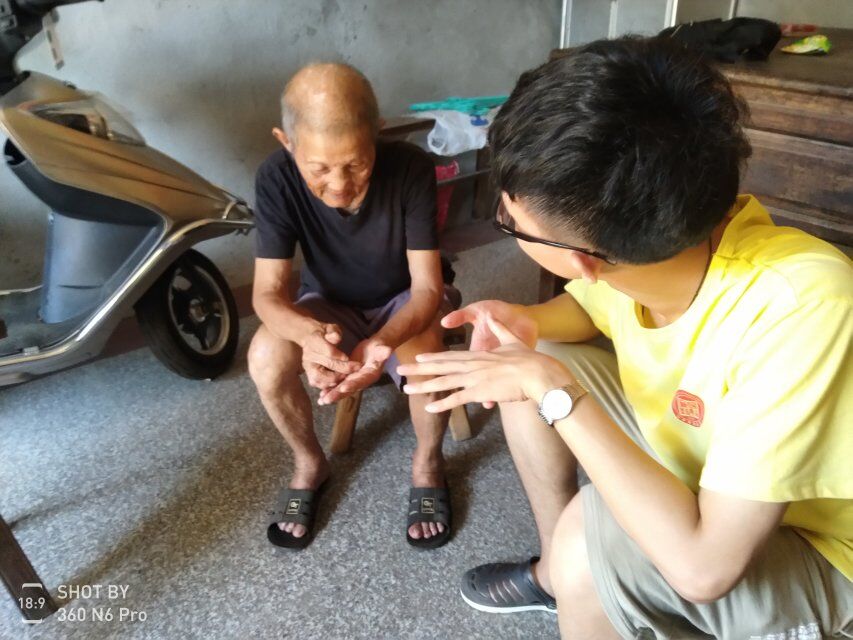 一团成员们来到了同田村里年龄高达90多岁的几位老人的聊天聚集地,听老人们讲述过去的村史。经过老人的娓娓道来,一团的成员们才知道原来同田村是以林姓为主,来源于商朝时期比干被挖心后,他的儿子为躲避灾祸,隐姓为林。后到了林文胜从福建莆田老家求官出游,行至江西的时候由于兵荒马乱无法返回莆田,在尧岗定居后,为了不忘记故乡,因此以同田为名。随着历史的发展和时代的变迁,林姓后代在当地占大多数,达到了百分之八十,这是同田村林姓居多的历史来源。