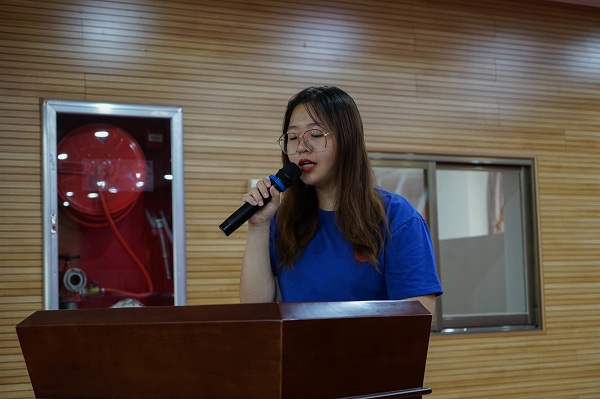 朗诵会伊始,由主持人简短开场介绍后,五团成员代表开始诵读红色家书。首先,由成员戴静怡诵读《再带给你十几个字》,这是左权将军壮烈殉国前三天写给爱妻刘志兰的最后一封信,信中传递了作者在祖国危难之时选择为国效力而舍弃家庭时的决绝与愧疚,却饱含着作者对妻子深深的爱;随后由成员王秋懿诵读方志敏先生在狱中写下的《可爱的中国》,这篇家书传递了方志敏先生对祖国深沉的爱与责任;最后由成员张晓玉诵读杨开慧1929年3月写给堂弟的信,充分表明了自己为革命牺牲下定决心时的坦然自若,同时表达了对亲人的牵挂。一篇篇感人的家书,将五团成员和参会人员带回到那个战火纷飞、动荡不定的时代,在或澎湃或淡然的情绪背景中感受中华民族红色文化的深厚底蕴。