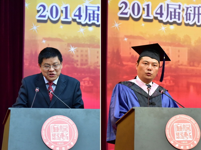 12月28日上午,学校在蛟桥园报告厅举行2014届研究生毕业典礼暨学位授予仪式(本期冬季毕业学生),校领导王乔、吴照云、易小明、邓辉、阙善栋、李良智等出席,学校相关职能部门及各研究生培养单位的领导、导师代表、2014届博士毕业生、硕士毕业生共计260余人参加了典礼。毕业典礼由校长助理李良智主持。