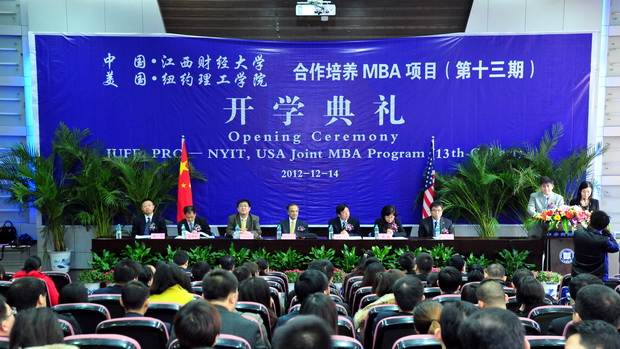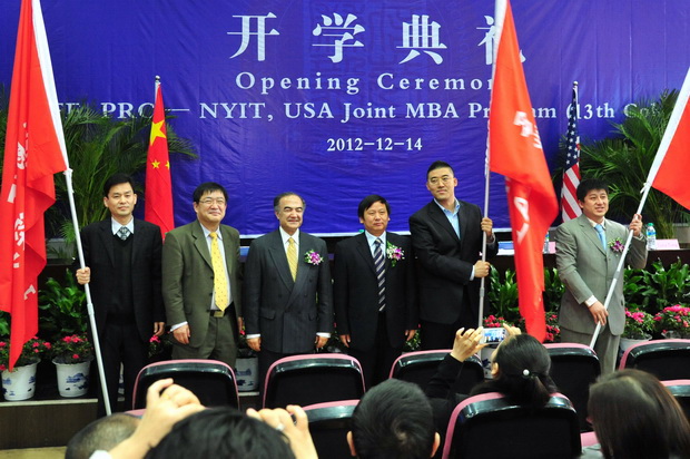 12月14日,我校与美国纽约理工学院合作培养MBA项目开学典礼在蛟桥园北区研究生报告厅举行。纽约理工学院副校长Rahmat Shoureshi教授、纽约理工学院管理学院副院长刘贤方教授、我校副校长卢福财教授出席典礼。MBA学院院长周玫、国际交流与合作处副处长高杨松、纽约理工学院中国校友会负责人仝雷与中美合作培养MBA项目上海、北京和深圳三地学员120余人参加了开学典礼。