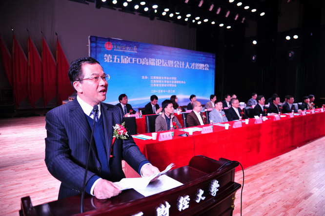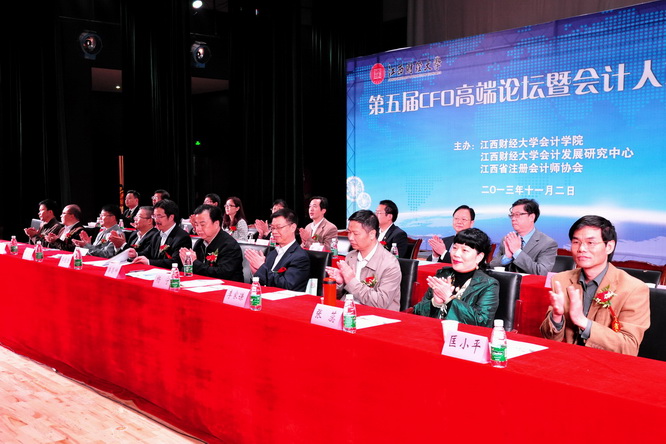 11月2日,由我校会计学院、会计发展研究中心,江西省注册会计师协会主办的江西财经大学第五届CFO高端论坛暨校园专场招聘会在蛟桥园北区大礼堂隆重举行。来自省财政厅、审计厅、注册会计师协会的领导,受邀的国内知名的会计师事务所与企业的演讲嘉宾以及会计学院本次增聘的客座教授与兼职硕导等出席开幕式。开幕式由会计学院院长章卫东主持。