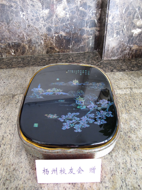 据了解,现在学校收到的校友捐赠品种类较多,主要有户外雕塑作品、屏风类艺术品、花瓶类艺术品、桌面摆设艺术品、书画作品等七大类。