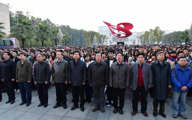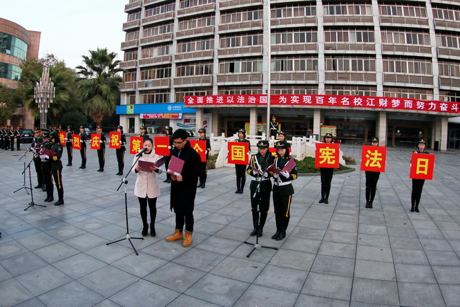 12月4日,我国迎来首个国家宪法日。在这具有纪念意义的时刻,我校组织全校各学院同学于12月4日早上7时在蛟桥北区崛起广场举行升旗仪式,以表达对宪法的尊重。校党委副书记王金华,副校长易小明、蒋金法、王小平,校长助理阙善栋,校团委及各学院相关负责人莅临升旗仪式现场。升旗仪式在校团委书记习金文的主持下顺利进行。