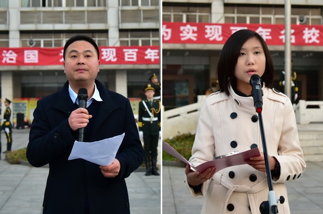 王金华在仪式上发表讲话。他着重介绍了我国首个宪法日的成立背景与意义,“将宪法实施日变成国家纪念日,是对宪法这一根本大法的尊重,使更多的人能亲近宪法,感触到宪法的关怀与温暖。”他还对广大在校学生提出要求,希望大家能知法、懂法、守法,校园内遵守纪律,进入社会不违法,将宪法作为标尺谨记心底。