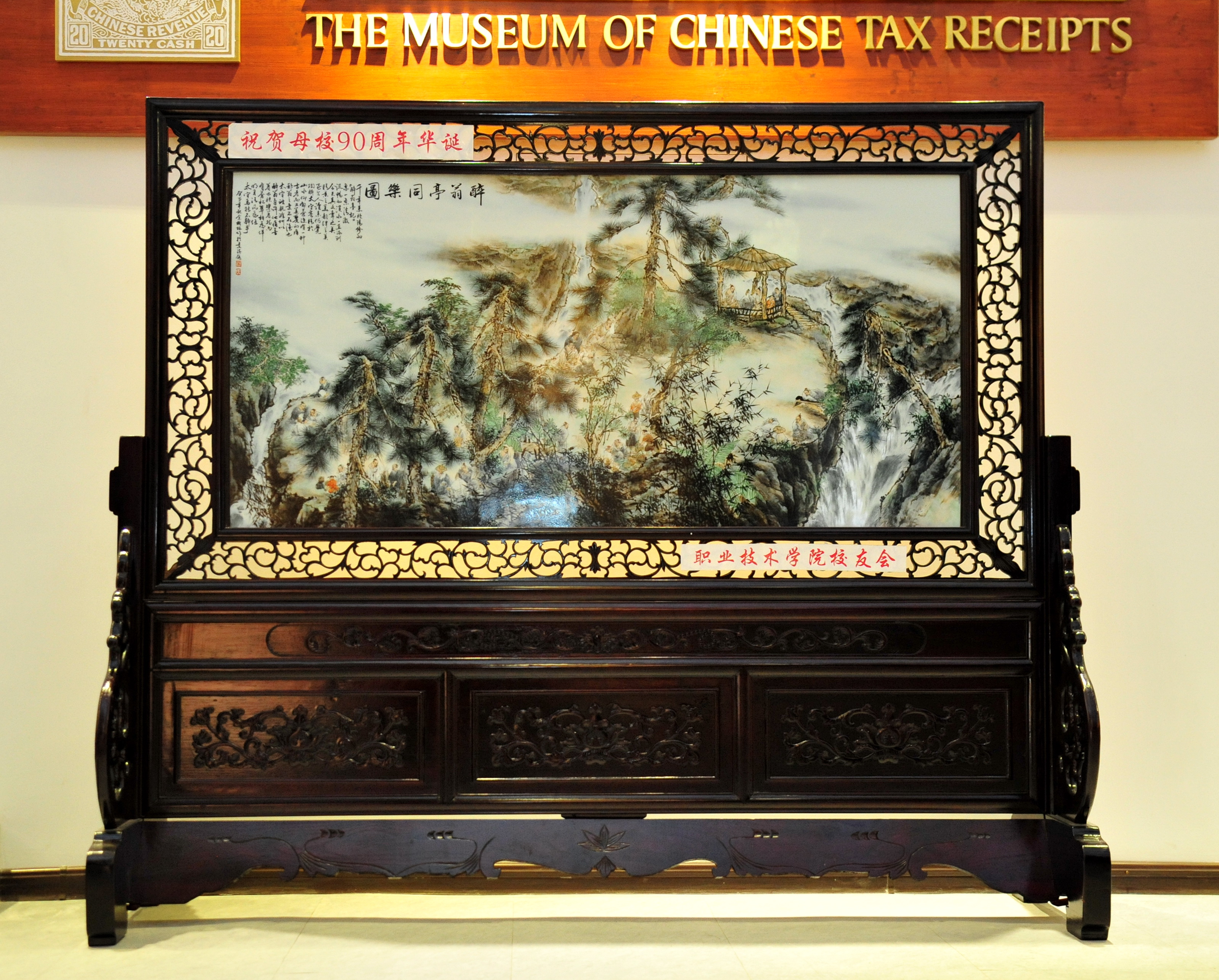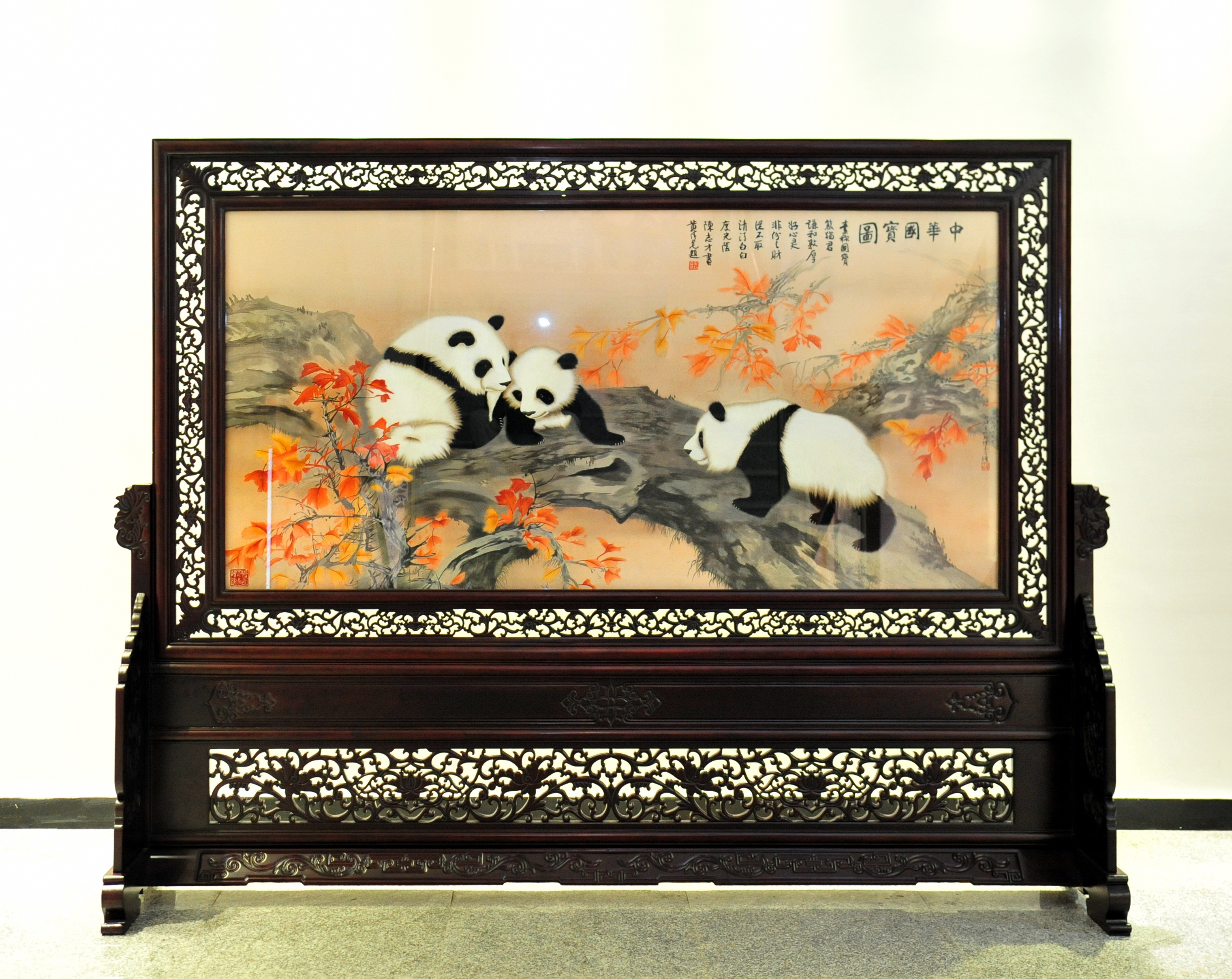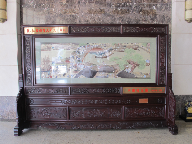 “中华国宝图”屏风代表了在川工作的江财校友对母校90华诞的祝贺,祝愿母校各项教育事业蓬勃发展,桃李满天下,才俊如星流。