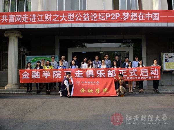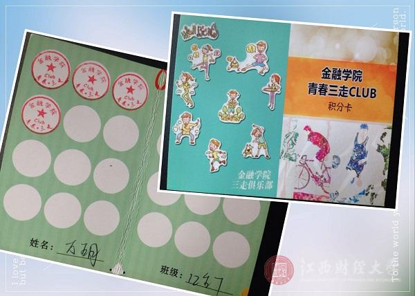 2015年4月17日,由江西财经大学金融学院团委组织召开的“青春三走俱乐部”启动仪式在翼轸楼二楼会议室举行。仪式上成立了金融学院夜跑、乒乓球、篮球、羽毛球四个体育类活动俱乐部。由学院提供场地与器材,于每周固定时间段对学生免费开放,每个俱乐部配有管理员,具体负责参与活动人员的登记及物资管理等事项。学生们不仅可以根据自己的兴趣爱好随意选择参与任意一项俱乐部活动,还可于事后获得“三走”活动积点与兑换小礼品。对学生的引导从管理转变为服务,“三走青春俱乐部”活动取得了极大的成功。俱乐部的成立标志着我院将“三走”主题群众性课外体育锻炼活动进一步推向常态化、机制化、品牌化。