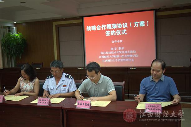 6月30日下午,财税与公共管理学院与南昌日报社、南昌经济技术开发区地方税务局、校档案管理中心共同签订了多方战略合作框架协议。