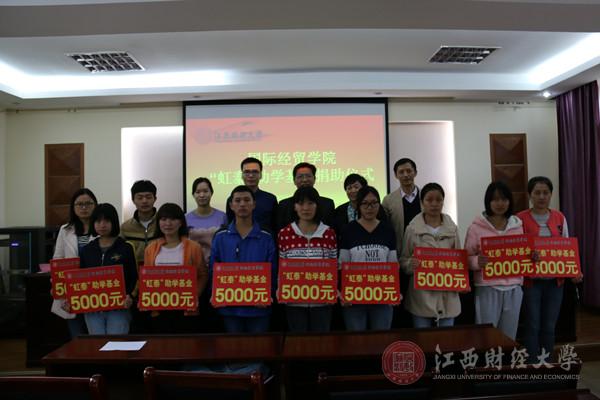 11月4日下午,由2001级国贸2班高杰校友发起的“虹泰”助学基金捐助仪式在国际经贸学院举行。此次资助活动由校友牵头,动员汇聚一群创业不忘教育,发展不忘学子的社会爱心人士,以个人名义向学校捐资助学,为国际经贸学院在校贫困生提供爱心帮扶,支持贫困学生完成学业。