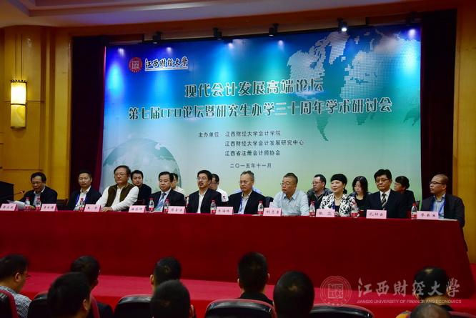 11月7日上午,由我校会计学院、会计发展研究中心、江西省注册会计师协会共同主办的江西财经大学“现代会计发展高端论坛、第七届CFO高端论坛暨研究生办学三十周年”学术研讨会在国际学术报告厅举行。江西省财政厅副厅长潘昌坤、省审计厅副厅长胡志勇、省注册会计师协会秘书长李家谦、副会长廖县生,我校副校长蒋金法及有关单位负责人等出席了开幕式。开幕式由会计学院院长章卫东主持。