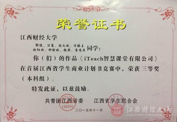 11月20日,由共青团江西省委主办,江西科技学院承办的江西省首届商业计划书竞赛在江西科技学院举行,本次竞赛共有全省数十所高校的86件作品参与,我校有18支队伍进入终审答辩。经过层层选拔和激烈角逐,我校参赛项目“掌上洪城”荣获一等奖,“iteach智慧课堂有限公司”荣获三等奖,我校荣获江西省商业计划书竞赛优秀组织奖。(文/校团委 编辑/匡琳)