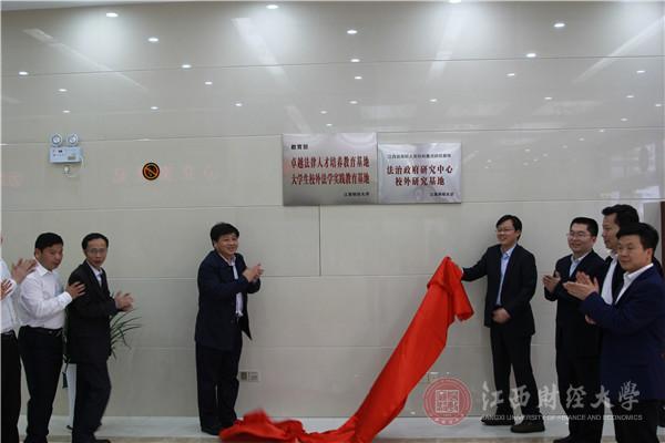 在江西省教育厅组织的2015年江西省普通高校法学本科专业综合评价中,江西财经大学法学院位居榜首。江西财经大学法学院主持工作副院长杨德敏介绍了江西财经大学法学院的办学历史、办学规模,以及近年来在人才培养、科学研究、社会服务、对外交流等方面取得的成绩,希望与抚州市中级人民法院在学生实习实训、科研课题调研、疑难案件专家论证、高校与实务部门人员交流等领域加强合作,实现校内外联合培养卓越法律人才机制。贺三宝代表学院与抚州中院签订合作协议,主持工作副院长杨德敏与柯军院长为基地揭牌。