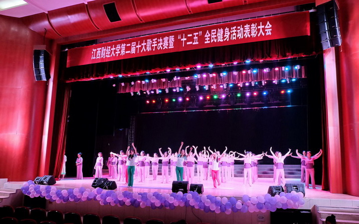 5月25日,我校第二届教工“十大歌手”决赛暨“十二五”全民健身活动表彰大会成功举行。校党委副书记易小明,纪委书记杨建林,副校长阙善栋,各职能部门、各分工会、各协会负责人和学生代表到场观看。校党委原副书记胡建华、会计学首席教授张蕊、中国民族声乐艺术研究会会员王玲、艺术学院副教授李二永、原国贸学院常务副院长朱美娥、党委宣传部部长王金海、校团委书记习金文担任决赛评委。