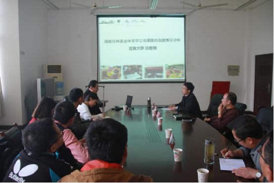 11月18日,吉首大学校长白晋湘教授受我校体育学院之邀作题为“体育学课题的选题情况分析”的学术报告。副校长邓辉、体育学院院长郑志强,学院教师和全体硕士研究生共30多人听取了此次讲座。讲座由詹新寰副院长主持。