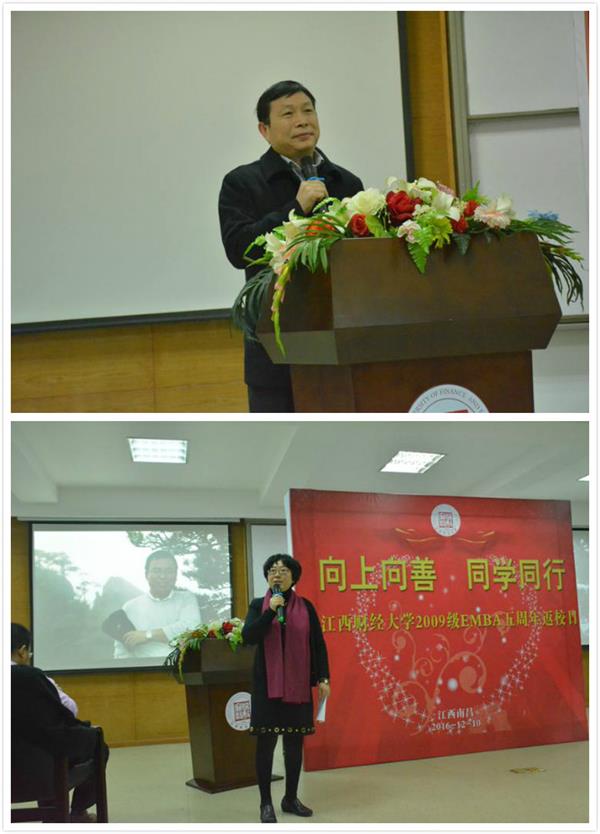 李良智致辞,他强调学校自2009年获EMBA办学权以来便旨在打造一个资源共享平台,学院及学员们应当秉承着“永不毕业”的理念,使学员们能够通过这个平台长期进行互动沟通。李校助还在讲话中提及企业家在中国的重要性,并对企业家寄予厚望期望。接着EMBA学院院长周玫教授上台致辞。周院长强调2009级EMBA班同学们是相亲相爱的一家人,应当相互理解、尊重、包容,共同成长与发展,同时周院长提到此次返校日是一个特殊的节日,是7年来不浅的缘分,并对学院授课安排做了简单说明,以杯为喻,寓意“一辈子”涵义,欢迎同学们随时回家,回到母校来重新学习,并感谢和祝福同学们。