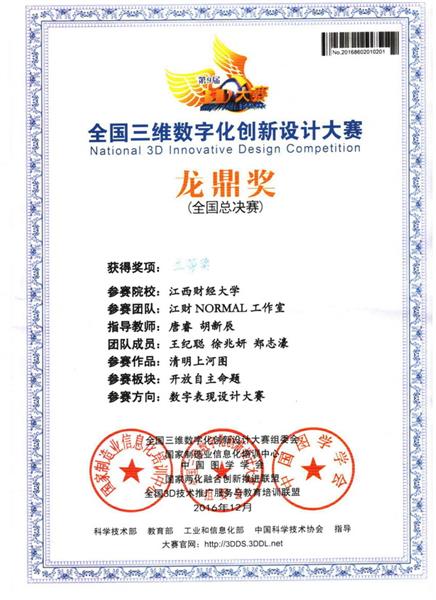 近日,从常州传来捷报,艺术学院NORMAL工作室学生提交的作品在全国三维数字化创新设计大赛中获得三个二等奖——方靓、刘湘胤、朱帅军参赛作品《忆乡》获得全国总决赛龙鼎奖二等奖,江西赛区特等奖、最佳网络人气奖;王纪聪、徐兆妍、郑志濠参赛作品《清明上河图》获得全国总决赛龙鼎奖二等奖,江西赛区一等奖、最佳网络人气奖;陈增达、马可、赵旸参赛作品《芒角》获得全国总决赛龙鼎奖二等奖,江西赛区最佳网络人气奖。
