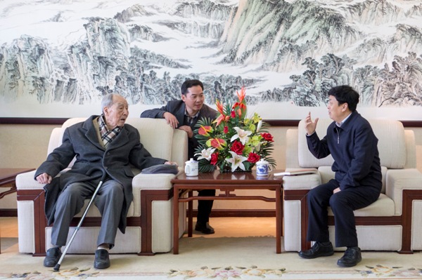 3月8日,96岁的翻译泰斗许渊冲先生携夫人照君女士应邀做客我校,在麦庐园校区为全校师生带来一场关于“中国文化如何走向世界”的精彩讲座。王乔校长在迎宾厅会见了许渊冲夫妇。