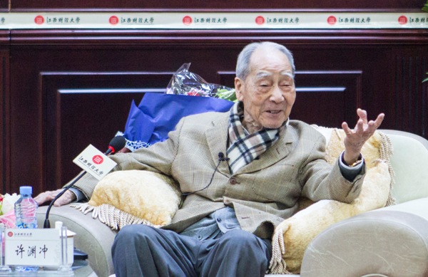 王乔校长说,许老是南昌人的骄傲,江西人的骄傲,也是中国人的骄傲。在学术领域笔耕不辍,时隔14年再次来到江西财经大学,前后两次讲座都是人气爆棚,充分体现了许老学术名望之高,也说明了许老对江财的厚爱。他说,许老笔耕不辍的精神是江财人学习的榜样,并祝二老健康长寿。许渊冲非常感谢江财的热情,他回顾了与江财老校长罗静远先生的友谊及与江财深厚的渊源。
