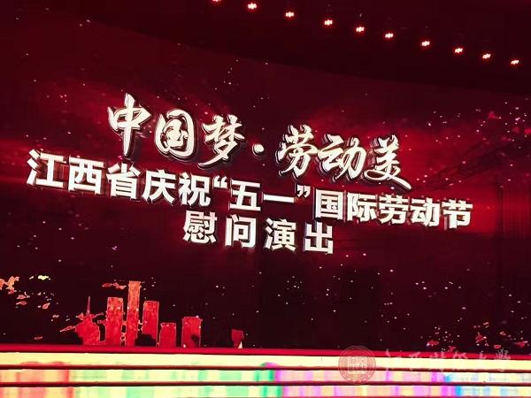 4月26日晚,江西艺术中心大剧院内歌飞扬、舞翩跹,掌声此起彼伏。“中国梦·劳动美”2017年江西省庆祝“五一”国际劳动节慰问演出在此举行。晚会在大合唱《请到职工之家来》中拉开帷幕,来自全省各行各业的职工用他们的激情和热情,表演了歌舞《从头再来》《井冈春潮》,情景讲述《是你给我一片天》、现代舞《总书记:我来自江西》等精彩节目, 来自各单位的职工和劳动模范表演的精彩文艺节目赢得了现场一阵又一阵掌声,用艺术的形式充分展示职工们“撸起袖子加油干”“以劳动托起中国梦”的决心和信心,充分展示和弘扬了劳模精神、劳动精神和工匠精神,抒发了劳动者的情怀。黄硕老师参加了本次慰问演出,和来自省内的青年歌手康志雄共同演绎了歌曲《从头再来》,受到社会各界好评。(文/艾艺)