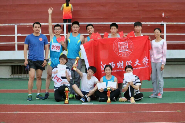 在5月18日至20日期间举行的江西省大学生田径比赛中,由我校体育学院徐贞、黄丽萍两位教练带队的校田径队斩获佳绩,共取得两个项目省冠军,两个亚军,六个季军,三个第五名和一个第七名的好成绩。其中,国际学院2013级陈璐琪同学获女子跳远、三级跳远季军,国际学院2014级刘恋同学获女子3000米亚军、女子1500米季军(破校记录),国际学院2016级肖广生同学获男子标枪季军,会计学院2014级何洪波同学获男子5000米、10000米冠军、体育道德风尚奖,会计学院2016级刘聪豪同学获男子1500米第五名,刘聪豪、肖广生、潘梓鑫、孙兴同学获男子4×100米接力第五名(破校记录),体育学院2016级社会体育指导与管理2班连莉婷同学获女子200米季军,女子100米第五名,体育学院2016级社会体育指导与管理2班温扬桂同学获男子1500米第七名。