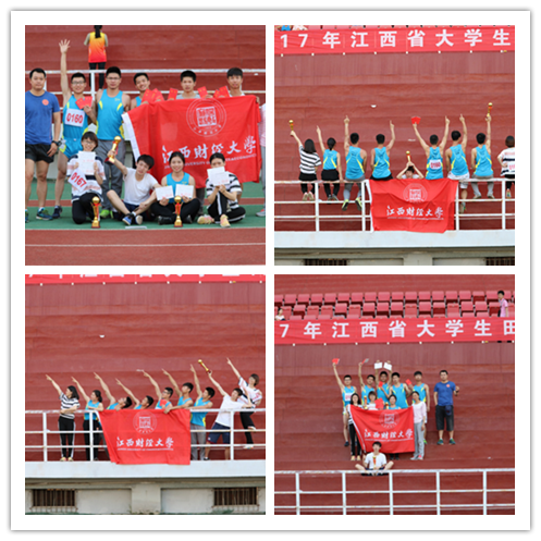江西省大学生田径比赛于5月18日至20日在江西师大瑶湖田径场进行。我校田径队经过长达半年的赛前训练,由徐贞、黄丽萍教练带队,派出9名本科甲组运动员与5名本科乙组运动员参赛。比赛结束,收获颇丰——三个团体奖,两个项目取得省冠军,两个项目破江西财经大学校运会记录,一人达国家二级运动员标准。