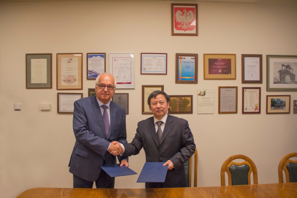 在科兹敏斯基大学访问期间,卢福财与该校校长Witold Bielecki教授、国际事务副校长Robert Razadca教授、国际项目协调人Marcin Matyja、国际事务办公室负责人 Valentyna Guminska进行了亲切友好的洽谈。卢福财简要介绍了我校的办学历史与现状,重点介绍了我校近年来国际化办学中所取得的成绩,尤其是我校学生获国家留学基金委资助赴海外高水平大学交流学习及学生进入世界一流名校深造的情况。Witold Bielecki校长对我校国际化办学成效表示了高度赞赏,希望以教师交流为切入口,有效推进两校之间的合作。双方就学生交换、双学位项目、硕士博士项目、教师交流、中东欧联合研究中心等合作事宜进行了细致洽谈,并达成共识,签署了合作备忘录。