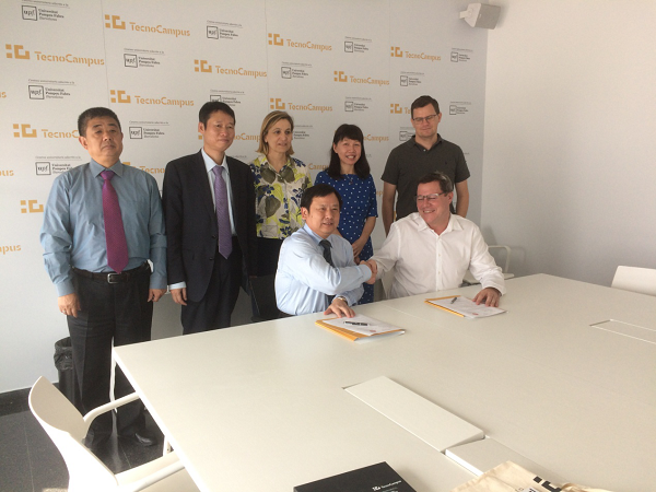 在西班牙庞贝发布拉大学巴塞罗那分校访问期间,卢福财一行与该校校长Jaume Teodoro Sadurni教授、对外联络与学生服务处负责人Luz Fernandezdel Rey女士、国际处项目负责人Yaiza Bueno Garcia进行了深入细致的会谈,取得丰硕成果。双方在师生交流、我校教师赴该校进修学习并参与其Go Global 项目等方面的合作达成了共识,签署了合作备忘录。双方期待两校教师共同参与Go Global计划,为中国企业进入西班牙以及西班牙企业进入中国做好咨询、服务工作,随后卢福财一行参观了该校企业孵化中心。