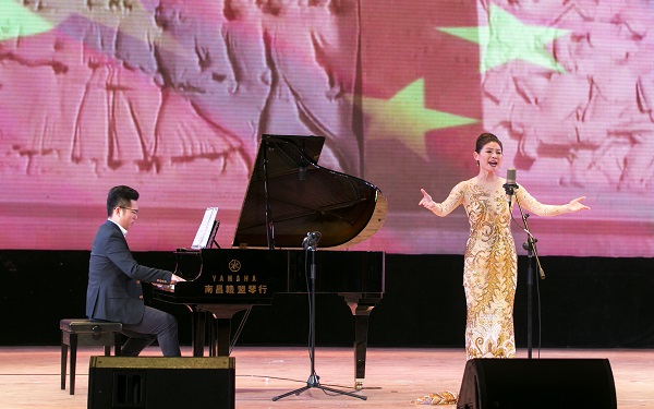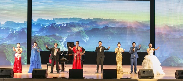音乐会演出在周菡老师的女声独唱《我爱这土地》中拉开了帷幕,紧接着马秋华老师的弟子——来自中国音乐学院研究生胡亦聪演唱的古诗词歌曲《越人歌》河南坠子《摘棉花》及李允儿的《声声慢》凸显出中华传统文化的魅力风采;韩玉澎、李二永、黄硕等四位老师的男声四重唱《祖国,慈祥的母亲》用深情倾诉的抒情特质和清新真挚的旋律歌唱,表达了中华儿女对祖国母亲的赤诚之爱;根据新疆民歌改编的由李允儿演唱的《青春舞曲》节奏琅琅上口,欢快明亮,令人听后扑面感受到一种动感四射的青春活力;一曲洪湖水,悠悠几代情,邹晨娜老师与胡玲老师的女声二重唱《洪湖水浪打浪》将曾经血雨腥风的英雄历程、烽烟滚滚的峥嵘岁月,在柔美悠扬的歌声中,尽显豪迈与忠贞;中国音乐家学院研究生郑森演唱的《望乡词》《今夜无人入睡》,深情的阐释了永不能忘的家国情怀;秦淮水长长,柳丝牵斜阳,王玲老师的《桃花扇》以细腻婉约的唱腔深深地打动着每一位观众的心;樊凤龙老师的一曲《红旗颂》,热烈讴歌了伟大祖国蒸蒸向上的繁荣景象,也唱出了中国人民在红旗的指引下,英勇顽强、奋发向上的革命气概。黄硕老师的《把一切献给党》用高亢明亮的歌声表达了永远颂党、爱党、追随党的情怀。