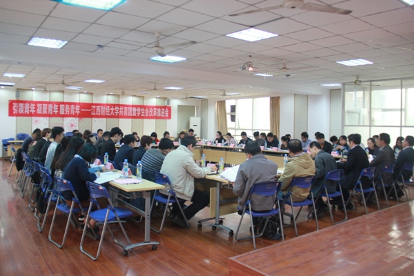 10月13日下午,江西财经大学共青团暨学生会改革推进会在江西财经大学蛟桥园南区大学生活动中心301报告厅举行,本次推进会以“引领青年、凝聚青年、服务青年”为主题。校党委副书记蒋金法出席会议并讲话。校团委书记习金文主持会议。