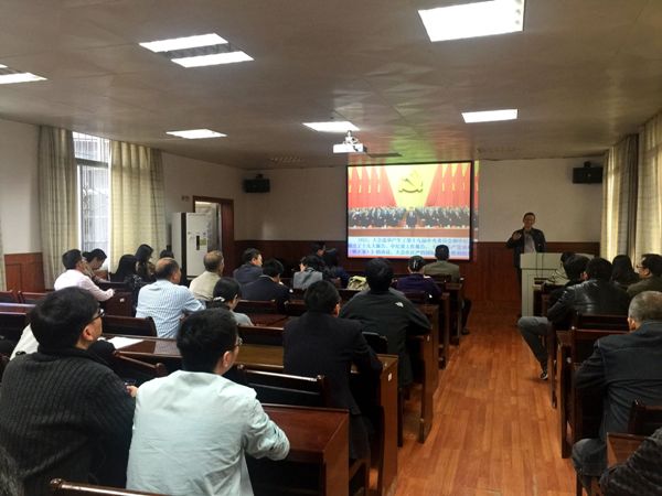 胡建国最后强调,十九大闭幕后,全院师生都要认真学习、深入领会十九大报告,用报告精神武装思想、指导工作。要及时将十九大报告的相关内容和精神特别是新时代中国特色社会主义思想及时与教学内容相结合,通过科学的阐述方式让学生真懂真信、入心入脑。要不忘初心,牢记使命,同舟共济,逐梦前行,为实现中国梦贡献力量。