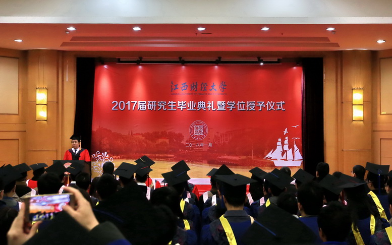 蒋金法宣读了江西财经大学《关于授予李鑫等2017届研究生博士学位的决定》和《关于授予金苗等2017届研究生硕士学位的决定》。