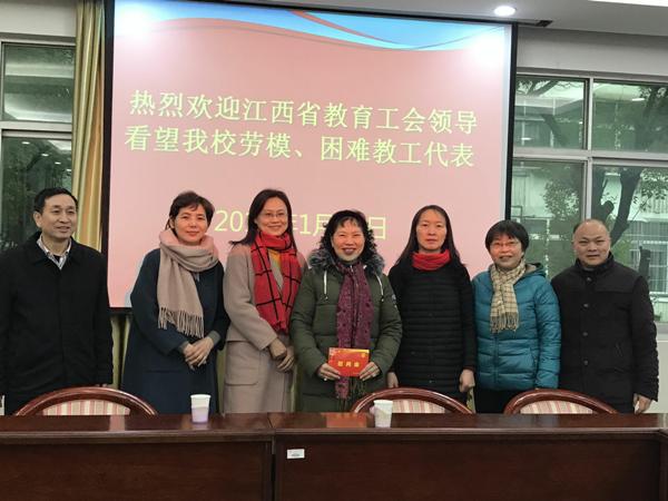慰问传真情,祝福暖人心。1月24日上午,江西省教育工会常务副主席黄虹、办公室主任帅涛一行专程来到我校,亲切慰问了我校省劳模、会计学首席教授、会计发展研究中心主任张蕊教授及困难职工代表图书馆李先花老师,送上新春祝福和慰问金。副校长刘小丽一同走访慰问。