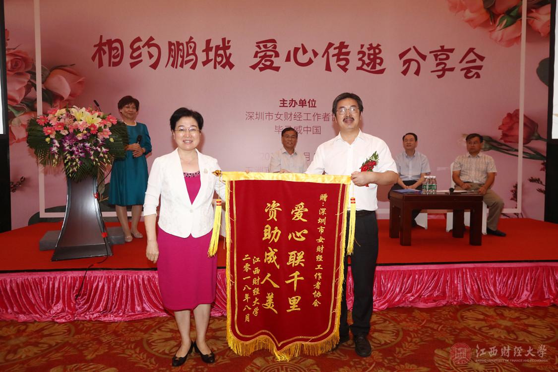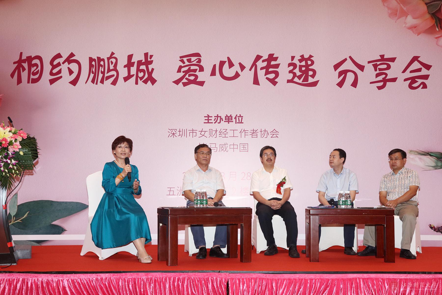8月28日下午,由深圳市女财经工作者协会举办的“相约鹏城,爱心传递”分享会在深圳市五洲宾馆召开,我校党委副书记蒋金法受邀出席并代表高校做分享交流。