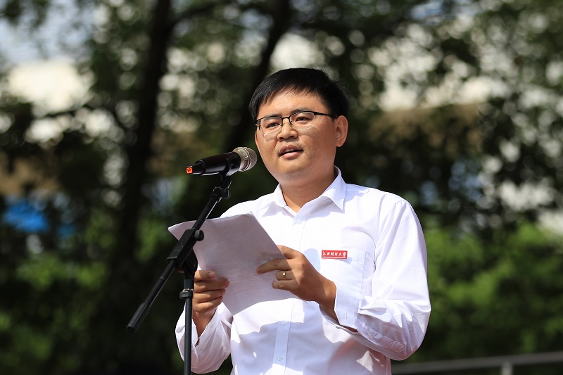 教师代表、科研处副处长方玉明结合自己的求学经历,以“大时代不应只有小确幸!”为题寄语学子,方玉明希望出生于新世纪的新生们能超越前辈,超越小我,关心国家命运、关心民族未来,立下凌云之志,成为新时代的主人。因为,大时代不应只有小确幸。最后,方玉明以“世界是你们的,也是我们的,但是归根结底是你们的。”为结语鼓励新生。