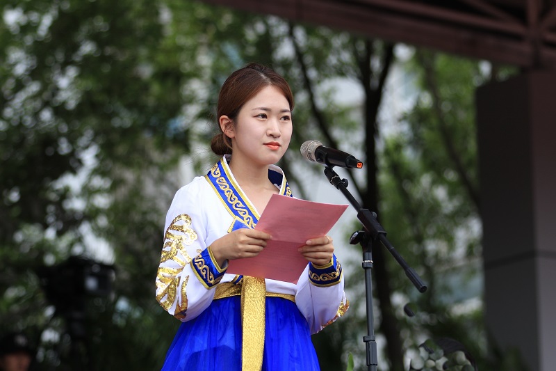 来自韩国的金多慧代表留学生新生发言,她说,现在中国已经成为世界关注的中心,为世界提供了发展思路。能够选择在中国学习是一种幸运,也是她的福气,韩国和中国有越来越多的合作与交流。她表示,要努力学习,为两个国家的合作发展贡献自己的力量,实现自己的价值。