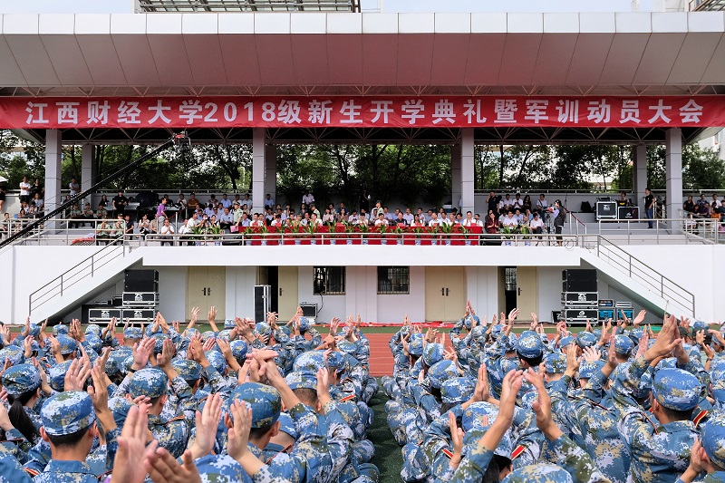 10日上午,江西财经大学 2018级新生开学典礼在麦庐园运动场隆重举行。校领导王乔、卢福财、蒋金法、刘小丽、杨建林、王小平、阙善栋、欧阳康、袁雄,陆军步兵学院副院长、教育长黄新炳大校,军训办公室主任马龙生大校,单仁资讯集团董事长、1981级商业会计专业单仁校友出席了典礼。参加典礼的还有各职能部门负责人、各学院院长、党委(党总支)书记、新生家长代表及五千余名本科生、千余名研究生代表和留学生代表。开学典礼由校党委书记王乔主持。