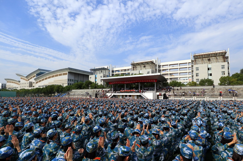 “我有健全的体魄,我有皎洁的心灵,我有高尚的理想,更有奋斗的精神……信敏廉毅,敬业乐群,永葆我校光荣!”随着江财校歌响起,身着军训服的新生脸上洋溢着青春特有的蓬勃朝气,这一刻,他们正式成为江财人!今天,江财丰腴他们飞翔的翅膀;明天,他们定会遨游在蔚蓝的苍穹!(文/匡琳 图/孙坚)
