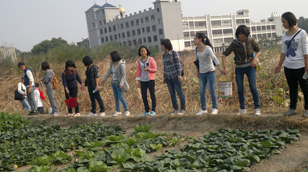 秋天正是收获的季节,孩子们亲手种下的菜也快成熟了。下午,江财红十字会的学生和“太阳村”的孩子们一起在菜园里度过。负责人陈主任说:“马上太阳村就可以蔬菜自给了。这是孩子们的成长,也是太阳村的不断完善。”在刘老师的协助下,江财红十字会的同学们完成了整片土地的浇水工作。尽管同学们大多来自城市,并没有接触过农活,却没有人喊累,没有人叫苦。在公益的道路上,不管大孩子还是小孩子,大家一同成长。