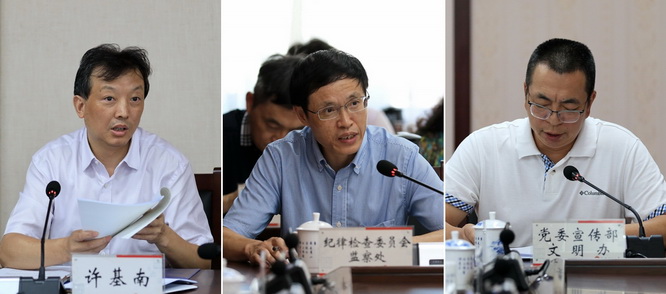 校党委常委、组织部部长许基南传达省委《关于坚决全面彻底肃清苏荣案余毒持续建设风清气正政治生态的意见》精神。校纪委副书记、监察处处长李法贵解读新修订的《中国共产党纪律处分条例》。文明校园建设办公室主任喻春龙传达习近平总书记在全国教育大会上重要讲话精神。
