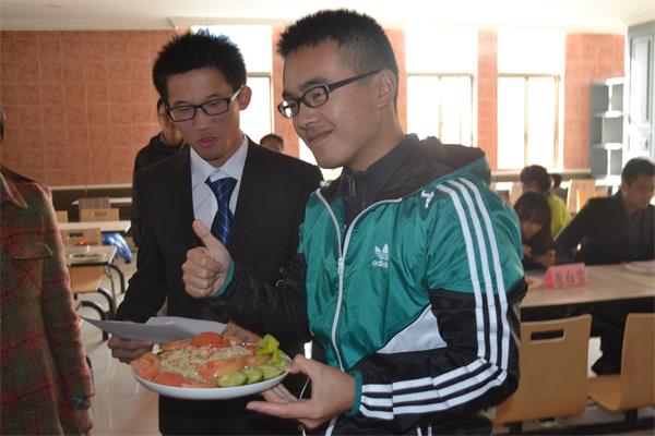 根据比赛规则,参赛选手需在30分钟内完成参赛菜品。比赛现场,选手们都全神贯注,选材、烧油、倒菜、翻炒、加调料、起锅,一气呵成。一时间内餐桌上摆满了各种各样的菜肴,宫保鸡丁、羊肉丸子、新疆烤饼等民族风味特色食品。汉族同学带来了豆腐圆、鱼头焖豆腐等粤、湘菜品。来自藏族电信班的同学则将具有民族特色的藏族糌粑带上餐桌。来自新疆的同学也不甘落后,特色手抓饭稳稳的抓住了评委和现场观众的胃。经过评委和大众评审的品尝,软件134班的参赛队伍凭借“啾啾肉”获得本次比赛的冠军,物联网141班带来的藏族糌粑和电信141班带来的手抓饭获得二等奖。