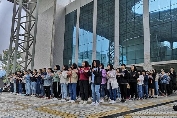 “我有健全的体魄,我有皎洁的心灵,我有高尚的理想,更有奋斗的精神……”随着熟悉的江财校歌伴奏响起,同学们立马进入了状态。大家用活力与朝气点燃了罗静远老校长笔下的词句,“信敏廉毅,敬业乐群”,愿以激情昂扬聊表人文学子爱校之心。秋风习习,细雨潇潇,摇摆的行道树也像是在为我们伴舞!在一遍遍的练习中,同学们也渐入佳境,饱含爱国之情的歌词配上娓娓动情的旋律,使人闻之慷慨激昂!同学们跟随指挥的手势,歌颂着祖国大好山河,一句句皆动人心弦,这是音乐的力量,也是同学们努力的成果!歌曲里激扬文字,歌声中激扬青春!