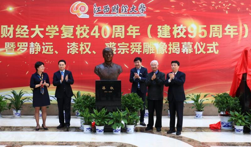 10月28日上午,已故老领导罗静远、裘宗舜、漆权雕像揭幕仪式在新图书馆大厅举行。罗静远、裘宗舜、漆权家属代表,校友代表孙希岳、王志雄、郑跃文、王文京、顾庆伟,校党委书记王乔,校长卢福财,校党委原书记、校党委副书记蒋金法,副校长袁雄出席揭幕仪式。