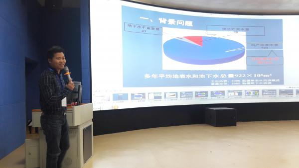 付帅博士作了“基于蒸腾耗水分析的绿洲水资源管理研究”的学术报告。在分析了新疆地区自然地理环境背景及水资源现状之后,结合模拟的冠层导度与结合Penman-Monteith模型对单木立地尺度的蒸腾耗水进行模拟计算,构建了关键水文过程的数理模型,应用构建的SWAP模型,结合农田结构评估了绿洲农田防护林的水资源配置,提出了不同情境下绿洲持续发展模式下,不同养护级别下的水资源浇灌量。